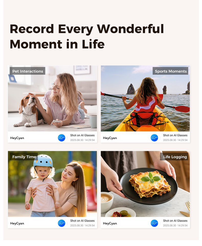 voice wake-up, music playback, music control, making and receiving calls, shooting, access to the large Chat GPT model, object recognition via image viewing, simultaneous translation, etc. It also features anti- shake shooting, WiFi transmission, dual-microphone noise reduction, single-point touch, wearing detection, etc. It has 8 million pixels, supports 1080p video and recording.Metal hinges with patented dual-plunger design (15° adjustable angle for better fit). Upgraded 290mAh battery. New multi-layer cooling system to prevent overheating.Comes with a charging case (3600mAh certified) that can also function as a power bank to charge your phone.