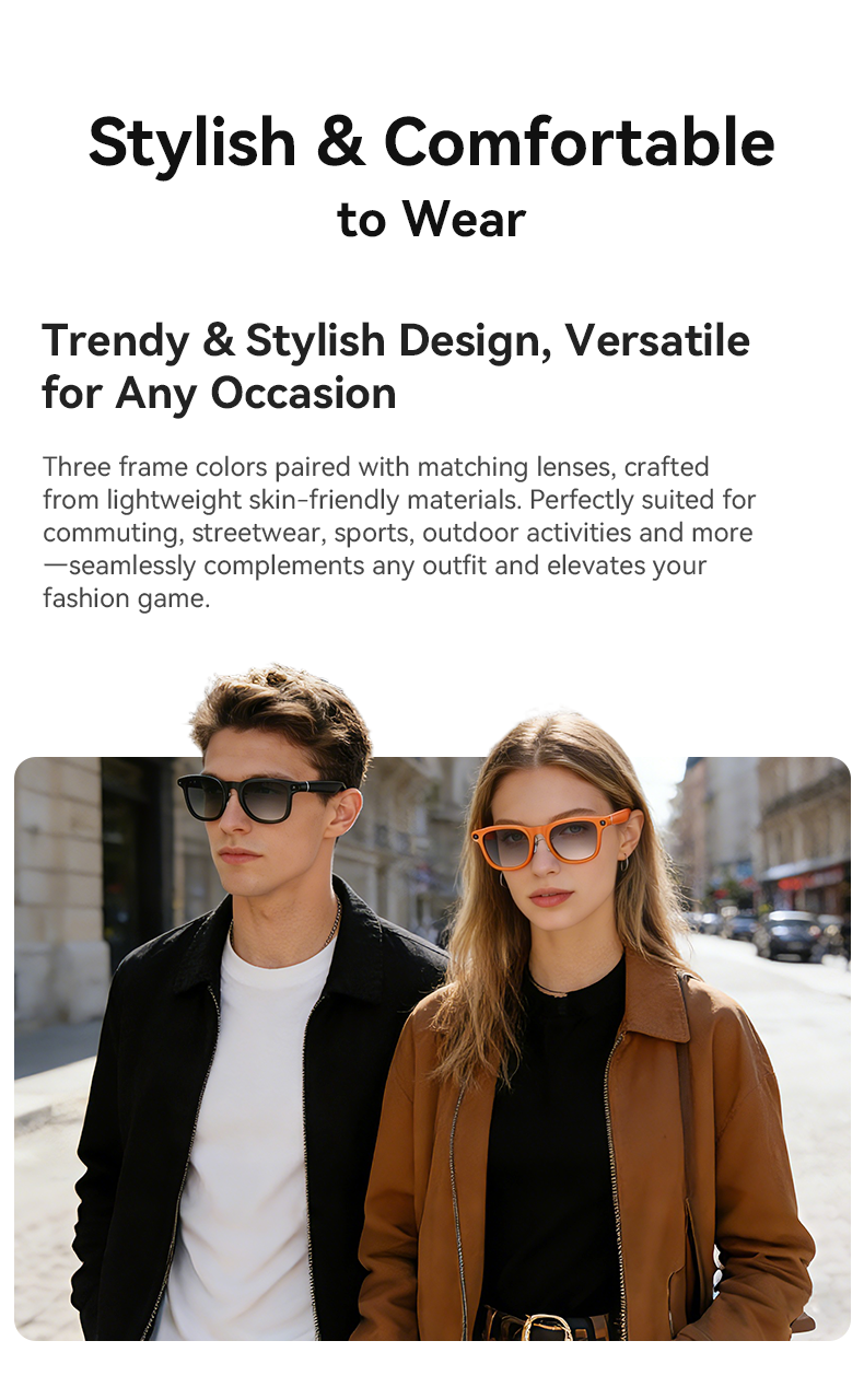 AI Smart Video Glasses support the following functions: voice wake-up, music playback, music control, making and receiving calls, shooting, access to the large Chat GPT model, object recognition via image viewing, simultaneous translation, etc. It also features anti-shake shooting, WiFi transmission, dual-microphone noise reduction, single-point touch, wearing detection, etc. It has 8 million pixels, supports 1080p video and recording.Metal hinges with patented dual-plunger design (15° adjustable angle for better fit). Upgraded 290mAh battery. New multi-layer cooling system to prevent overheating.Comes with a charging case (3600mAh certified) that can also function as a power bank to charge your phone.