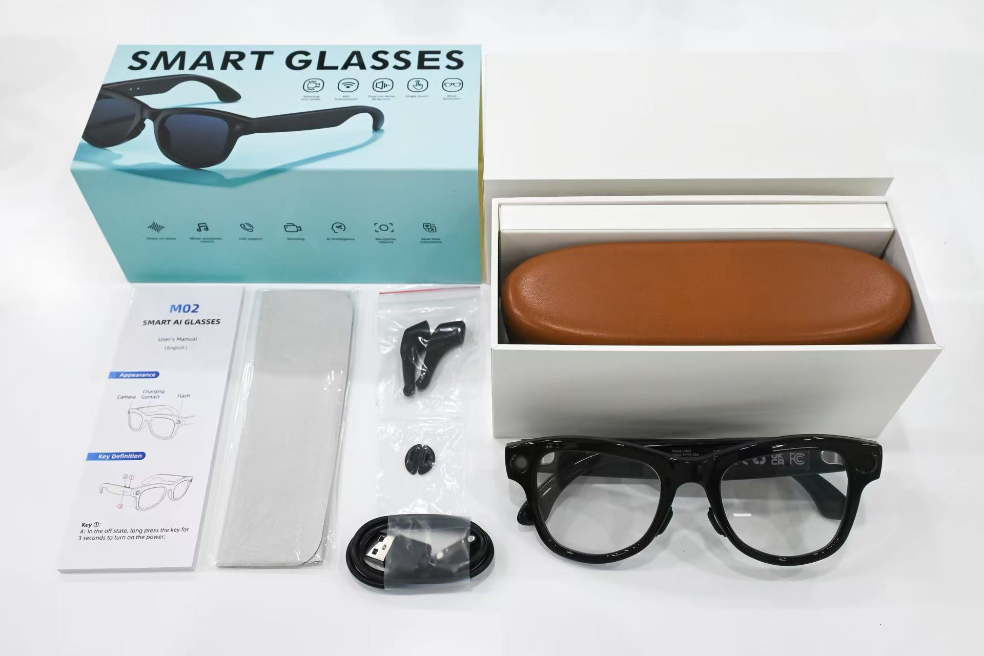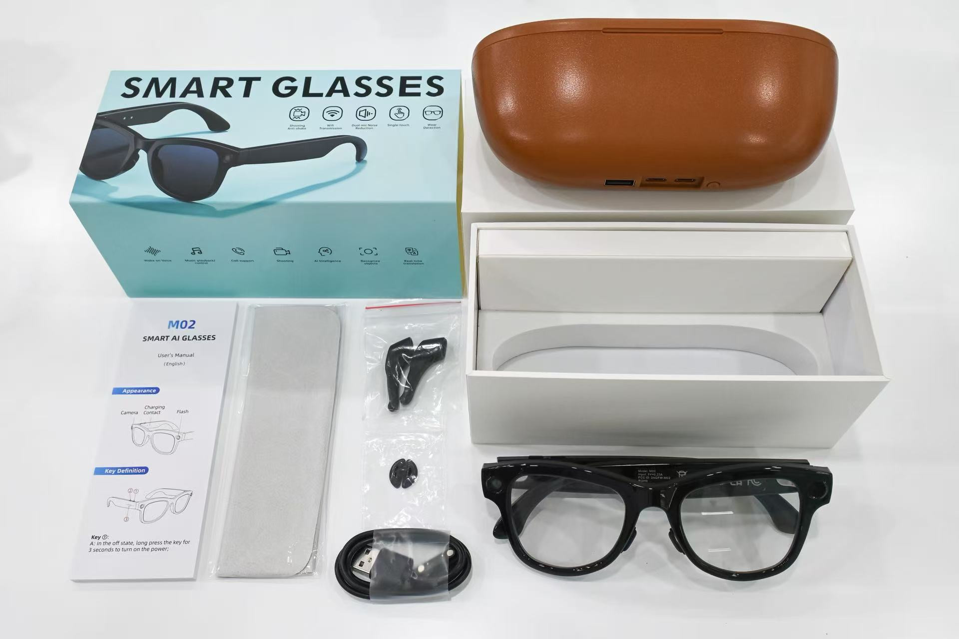 M01 AI Smart Video Glasses support the following functions: voice wake-up, music playback, music control, making and receiving calls, shooting, access to the large Chat GPT model, object recognition via image viewing, simultaneous translation, etc. It also features anti-shake shooting, WiFi transmission, dual-microphone noise reduction, single-point touch, wearing detection, etc. It has 5 million pixels, supports 1080p video and recording.